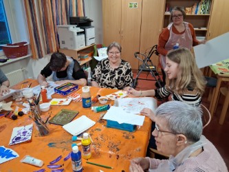 Gäste und Bewohner lernten sich anschließend bei verschiedenen Aktivitäten kennen. Unter anderem wurden ein Kalender und ein Kreuz gestaltet. Auch die musikalischen Angebote waren sehr gefragt. Mit einem gemeinsamen Pizza-Essen endeten die Nachmittage.