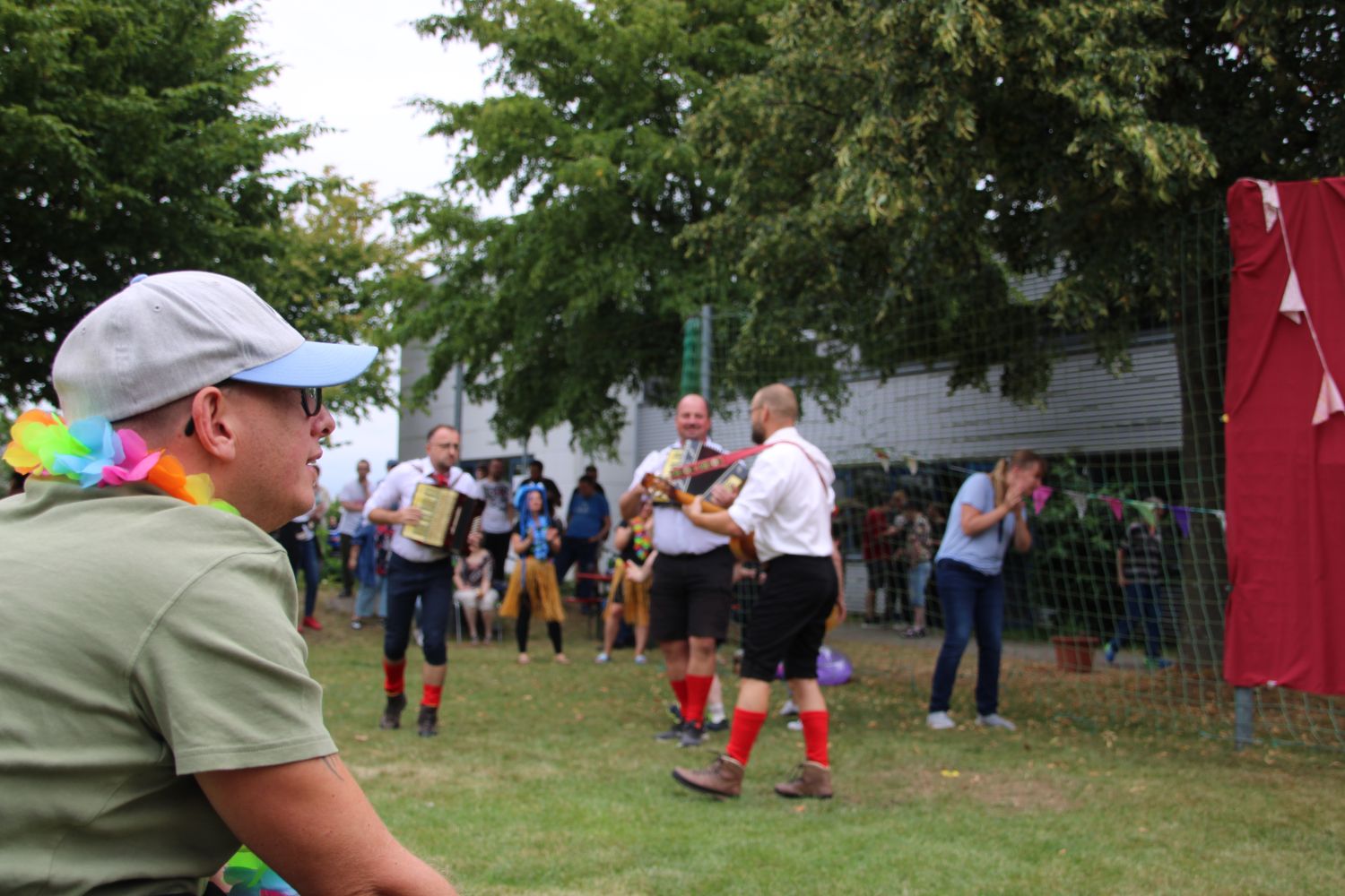 Das Fest begann um 12:00 Uhr mit der offiziellen Eröffnung durch Frau Friede. Begleitet wurde der Auftakt von schwungvoller Musik der Gruppe Gaudi Bu, die sofort für gute Stimmung sorgte.