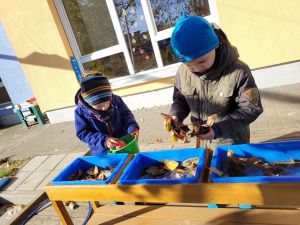 Ein Kindertisch zum Konstruieren mit Sand oder Versuche mit Wasser und Pflanzen lädt ein zum Entdecken der natürlichen Prozesse oder zum Bauen sowie Experimentieren auf Tischhöhe. Soziale Zusammenkünfte an den drei Arbeitsbecken geben Raum für gemeinsamen Austausch.